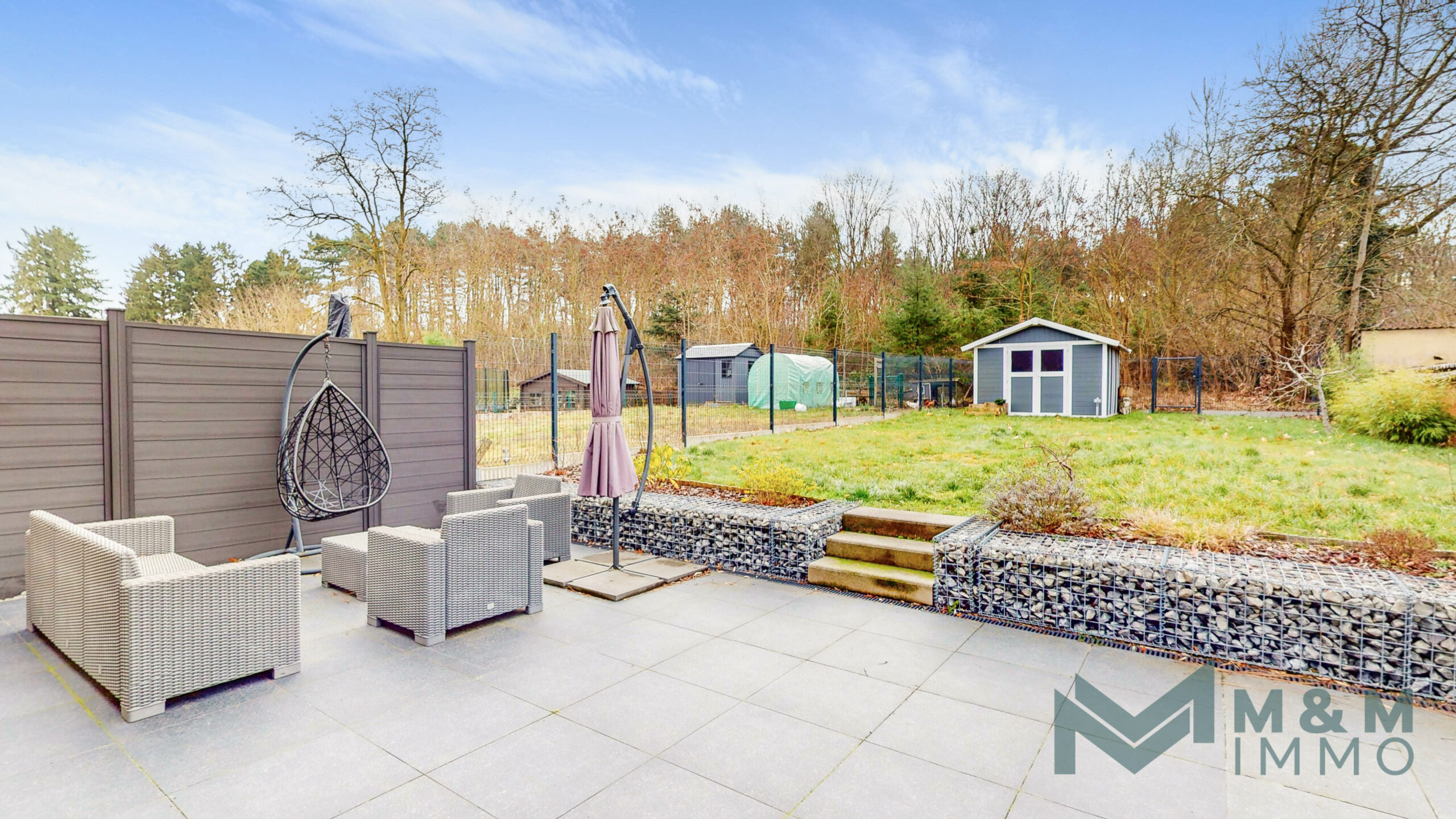 À l’extérieur, la terrasse et le jardin exposés plein sud invitent à la détente et aux moments de partage en famille ou entre amis. Le passage latéral et les quatre places de parking extérieur apportent un confort supplémentaire au quotidien, tandis qu’un grenier de rangement complète avantageusement l’ensemble.